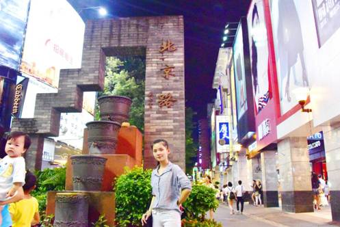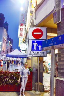 全面整饰过的上下九路商业步行街真的让人眼前一亮,往日的荆钗布裙摇身一变,开始光彩照人起来。满眼古色古香、以浅灰为主色的仿古建筑,干净明丽、清清爽爽,衬着来来往往、穿着各色各样的时尚衣裳的人们,很是赏心悦目。这条长约800米的街道集齐了购物、娱乐于一体,街内物品应有尽有,而且价廉物美.