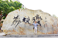 广场的大石上有当代著名艺术大师黄永玉先生题写的"荔枝湾"墨宝真迹,是荔枝湾地标。石大,字也大。石上字体笔力千钧,飘若浮云,矫若惊龙,得钟王墨法;直笔劲书,汪洋恣肆,随意挥洒,线条奔放呈左倾之势,动感强烈,颇有毛主席书法气势。