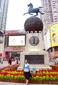 在上下九步行街的广场上,伫立了一个巨大的中国旅游标志雕塑--马踏飞燕。