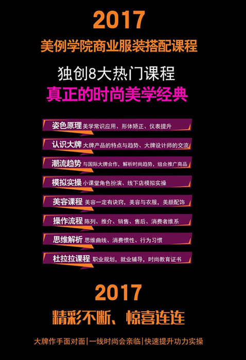 美是一个整体,不能孤立为身材、色彩及配饰等。以塑造亚洲女性整体美的目的为己任,形成完整的女性整体美理念教育课程。