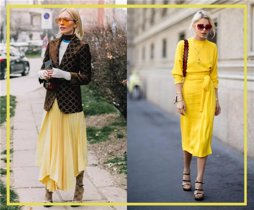 云雀黄很适合用在裙装款式上,明快的颜色每一步都随之跃动▼