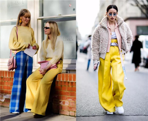 或者入手一条正受宠的阔腿裤,用强烈的云雀黄碰撞出吸睛的造型,既容易copy又很时髦▼