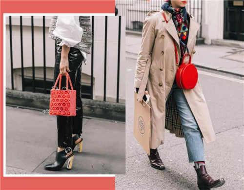 不用穿得太复杂,在一片黑白灰的街拍里,番茄红已经赚足了眼球▼