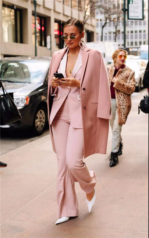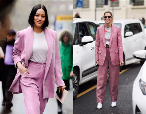 粉紫的西服套装可以内搭白色T恤营造爽朗的感觉,谁说职场就不能既柔美又干练呢?▼