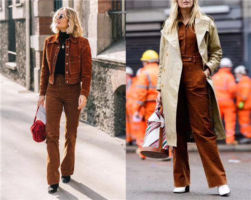 出镜率最高的当属褐色裤装,可随心演绎法式复古情怀▼