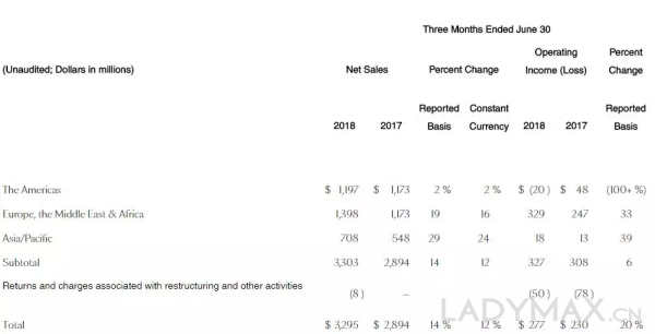欧洲、中东和非洲地区销售额同比大涨19%至13.98亿美元,主要受意大利、荷比卢和印度等地区中国游客增多,旅游零售销售收入强劲增长提振;