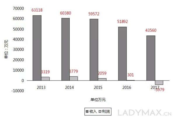 现代传播收入从 2013 年开始不断下滑,图为其近年的收入和利润数据