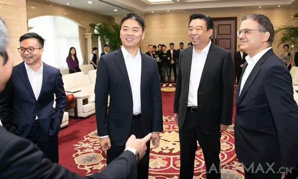 刘强东从美国回国后首次亮相, 图为京东集团与如意集团签约现场